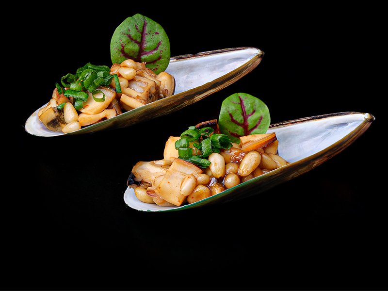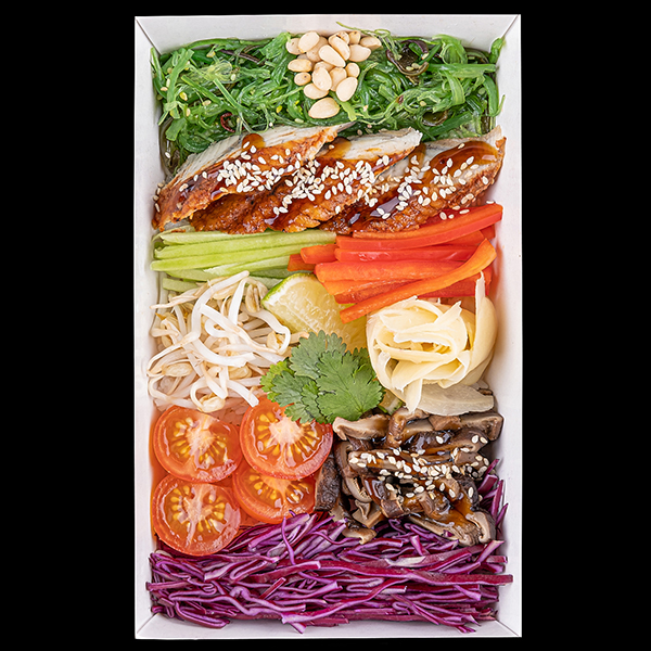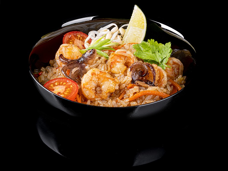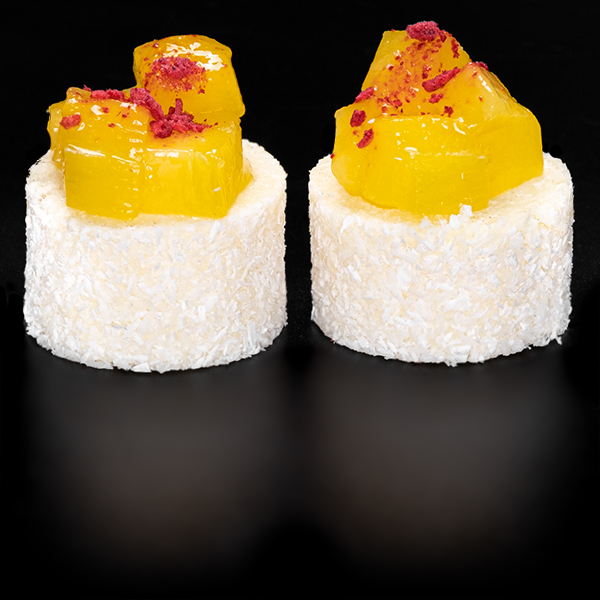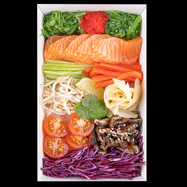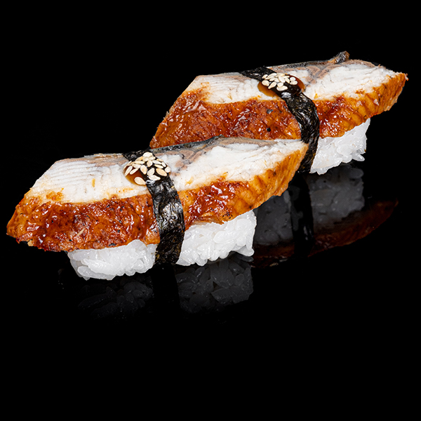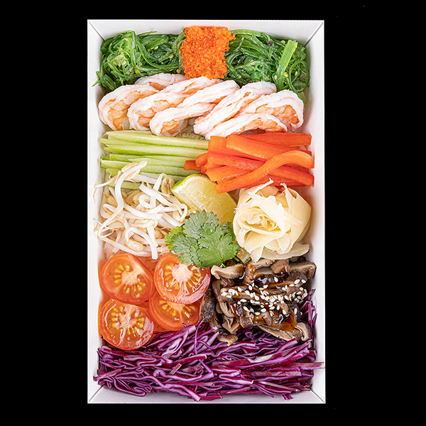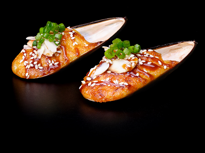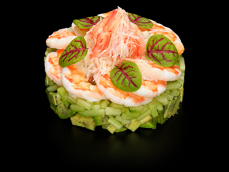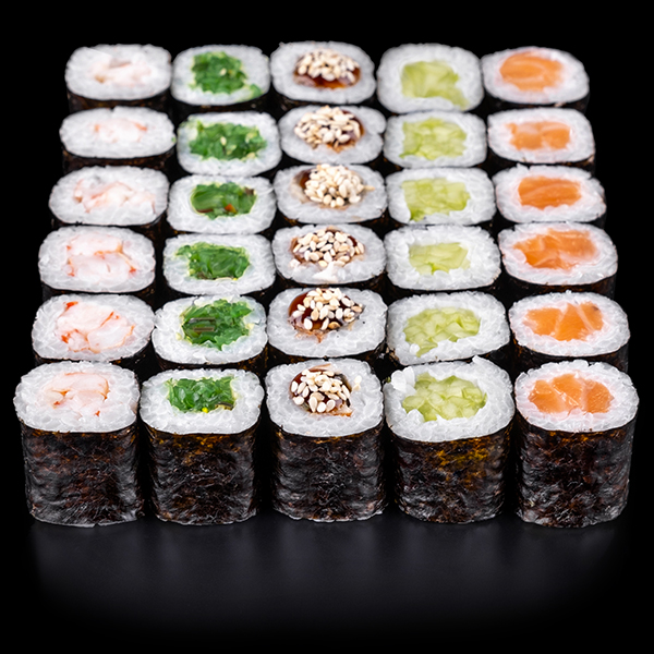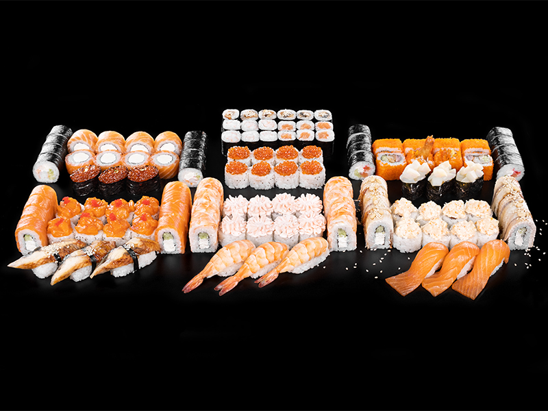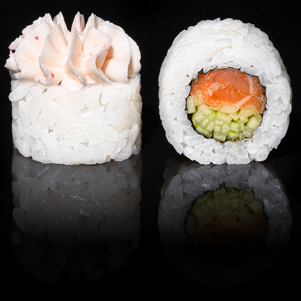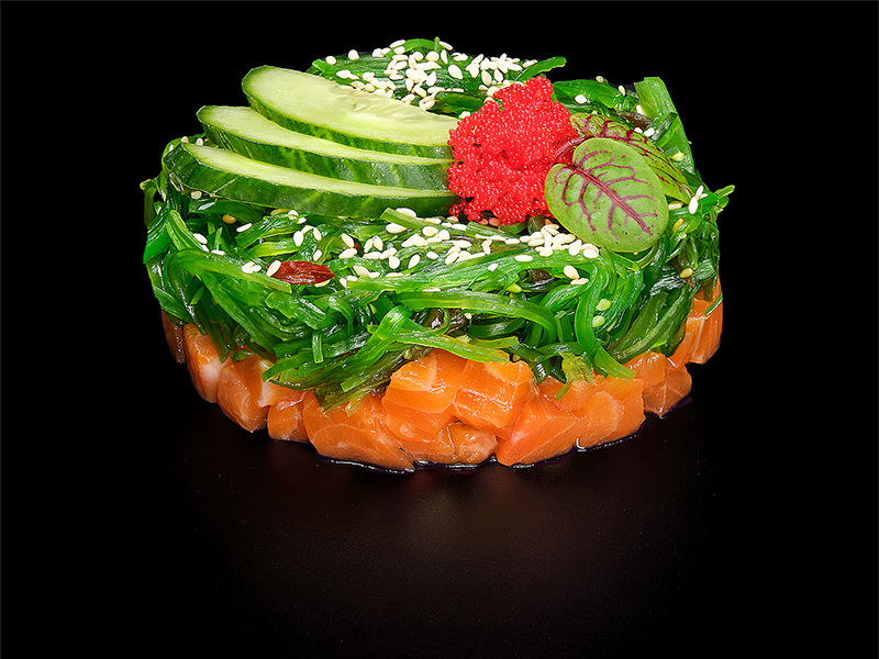 Опалённый фарерский лосось в восхитительном сочетании с тигровой креветкой. Внутри спрятано облако отборного японского риса и фирменный соус Васабико. Венчает это великолепие икра лосося и микрозелень, 5 шт.